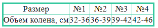 Таблица размеров