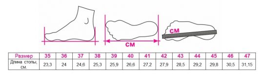 Таблица размеров