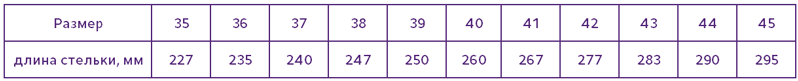 Таблица размеров
